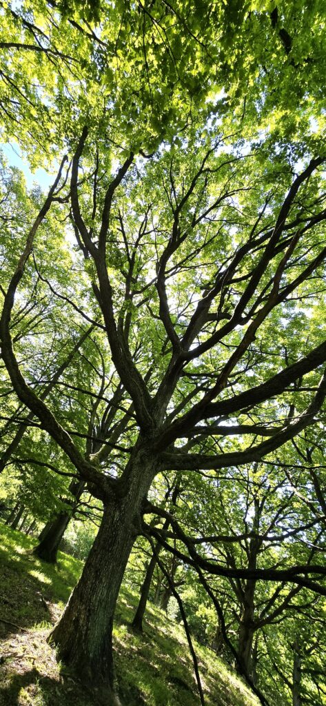 Fascinuje ma ich čistá geometria a dokonalá symetria. Keď sa pozriem na korunu starého duba, alebo smreka, vidím tú dokonalosť – matematický tanec konárov hľadajúcich svetlo. Každý odtieň zelenej, od jarnej smaragdovej až po hlbokú machovú, je dôkazom ich obrovskej životnej sily. Majú svoju dušu, ktorú prirodzene vpísali do svojich dokonalých tvarov. Sú to živé sochy, ktoré sa nikdy neponáhľajú a predsa vždy dorazia k slnku. Poriadok, ktorý nemá chybu. Tie tvary a tie línie… je to tvár histórie. Každý uzol na kmeni, každá prasklina v kôre svedčí o tom, čo všetko museli ustáť.